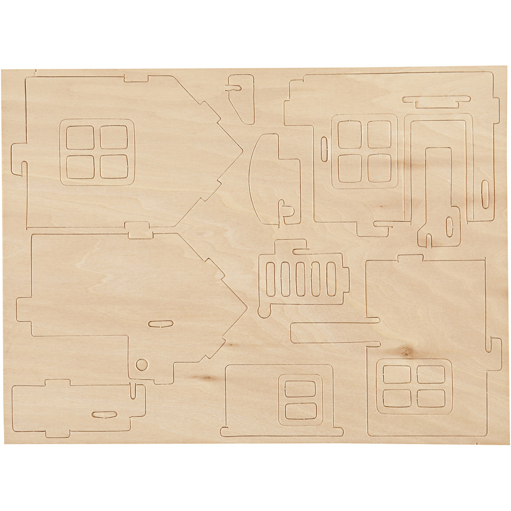 Creativ Company 3D Houten Constructie Set, Huis met terras, afm 19x17,5x15, 1 stuk