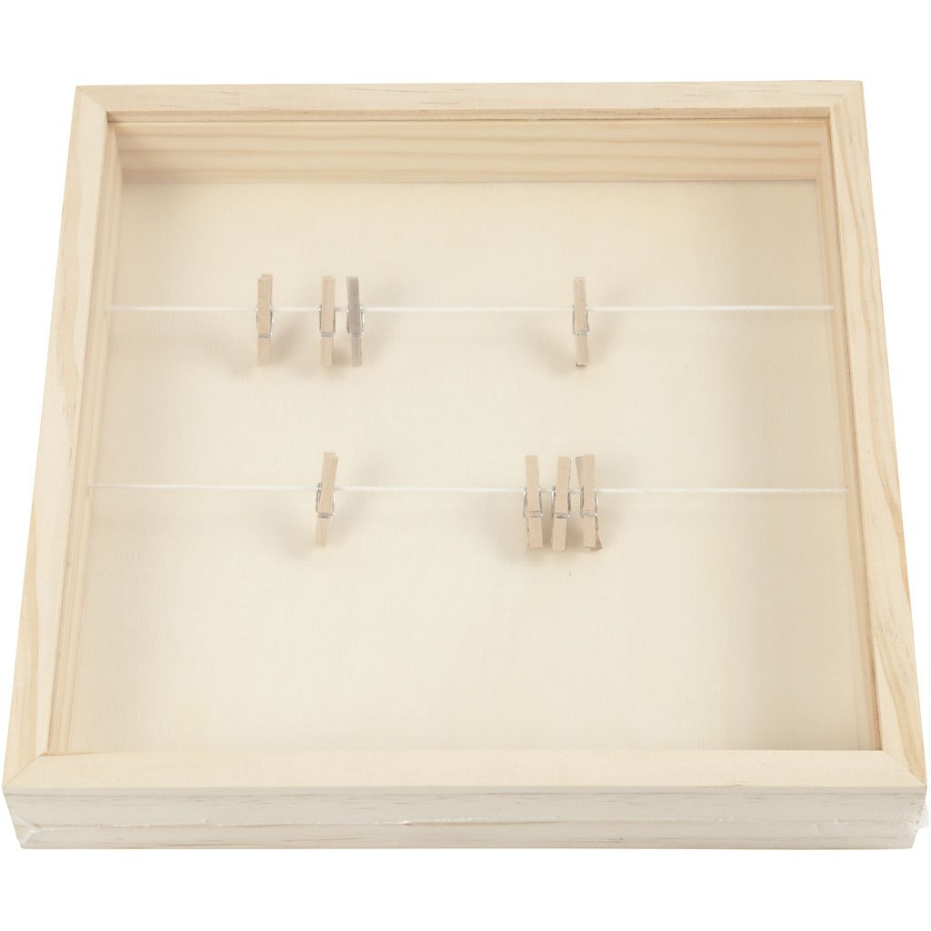 3D lijst met 2 waslijnen en 8 kleine wasknijpers. Het schuifdeksel is gemaakt van perspex
