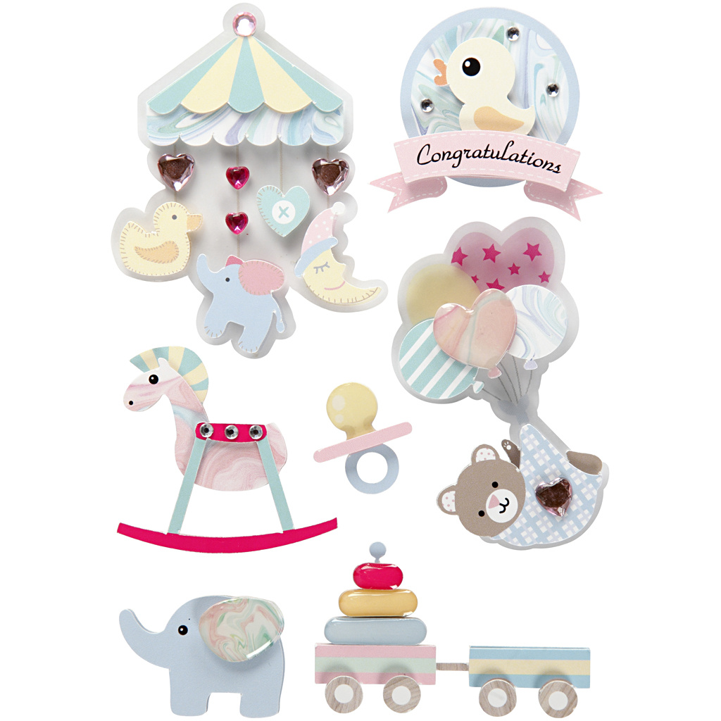Creativ Company 3D stickers, baby, H: 25-70 mm, B: 20-55 mm, dikte 7 mm, 8 stuk/ 1 doos