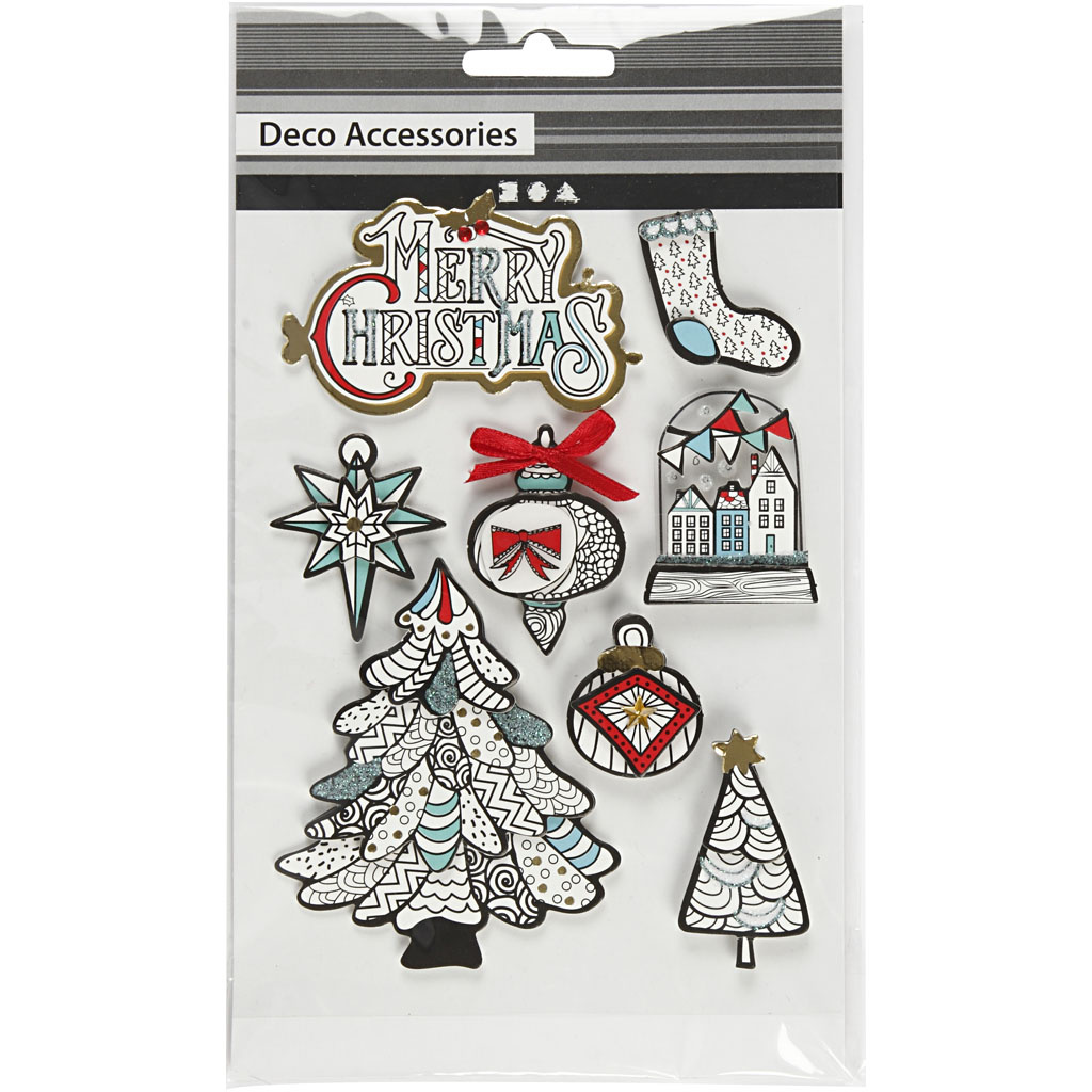 Creativ Company 3D stickers, kerstmotieven, H: 32-80 mm, B: 25-65 mm, 8 stuk/ 1 doos