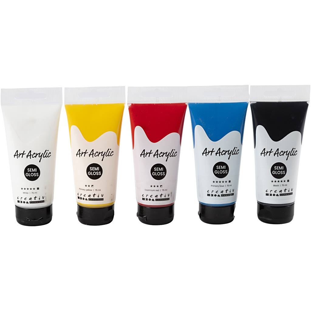 Creativ Company Acryl Verf, Color School, semi-glanzend, diverse kleuren, 5x75 ml/ 1 doos