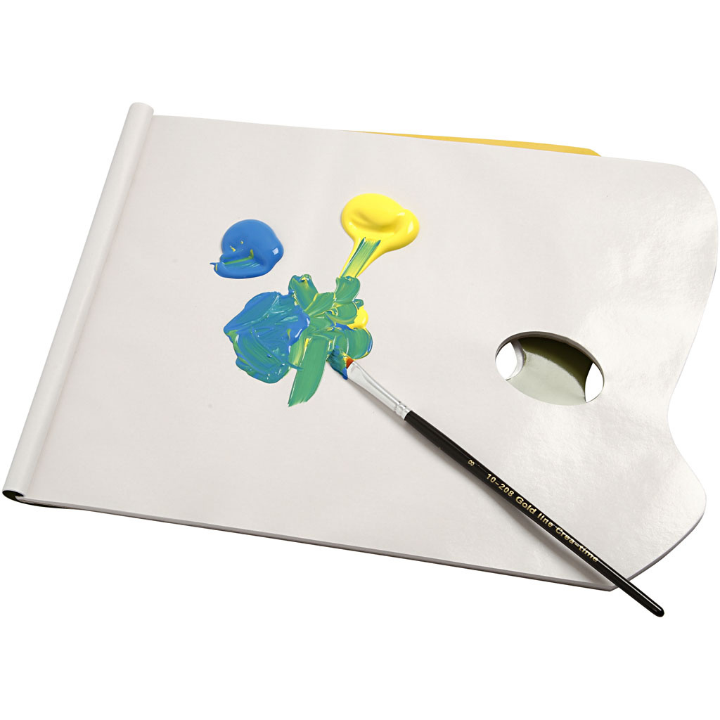 Dit papieren palet is ideaal voor schilderen met acryl- en aquarelverf, zowel thuis als tijdens cursussen of workshops. Na gebruik scheur je eenvoudig het bovenste vel af, zodat je altijd een schoon werkoppervlak hebt en opruimen snel gaat. Dankzij het lichte gewicht neem je het palet makkelijk mee voor creativiteit onderweg.