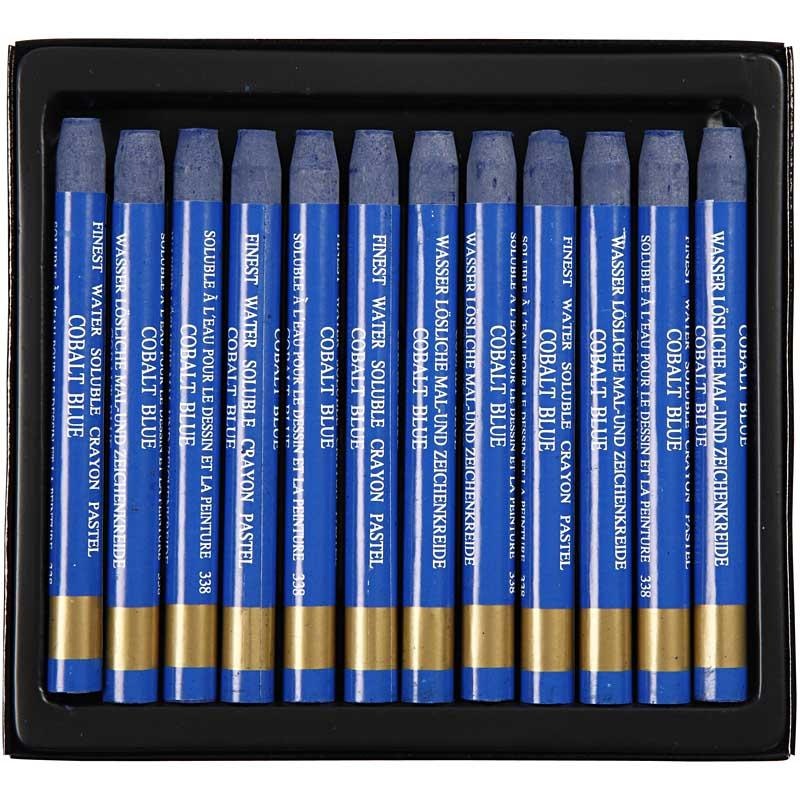 Mungyo Aquarelkrijt, L: 9,3 cm, dikte 8 mm, kobalt blauw (338), 12 stuk/ 1 doos