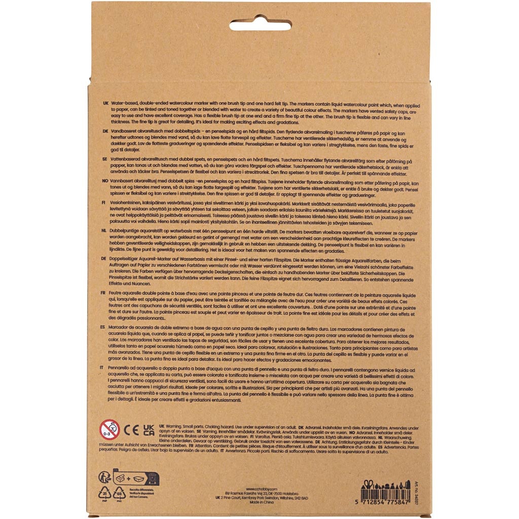 Creativ Company Aquarelmarker, Pastel, lijndikte 2+4-8 mm, diverse kleuren, 12 stuk/ 1 doos