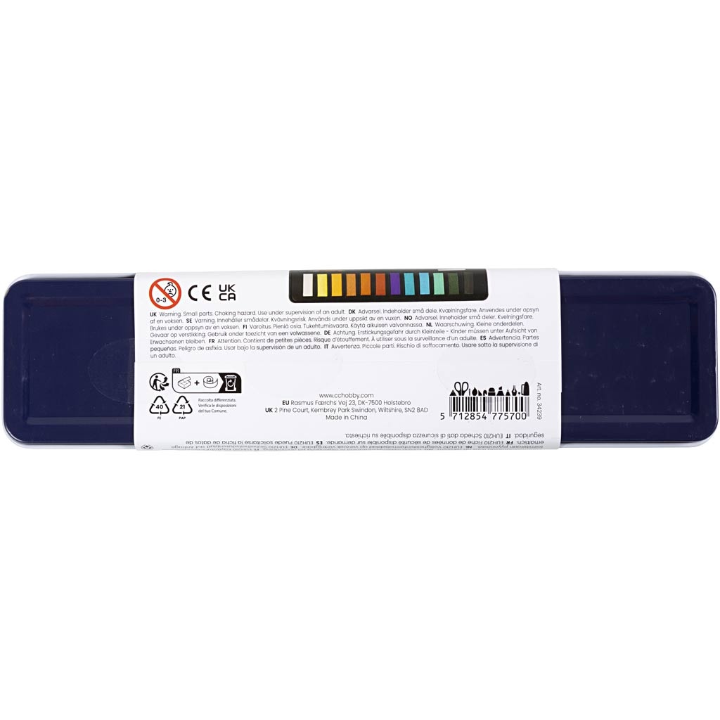 De Colortime aquarelset met metallic kleuren biedt een verrassend palet aan sprankelende tinten waarmee je tekeningen en schilderijen een unieke glans geeft. Deze set bevat twaalf verschillende metallic kleuren, netjes verpakt in één doos, en is ideaal voor creatievelingen die net dat beetje extra in hun aquarelwerk zoeken. Dankzij de compacte afmetingen past de etui gemakkelijk in een tas of lade, zodat je deze overal mee naartoe kunt nemen.