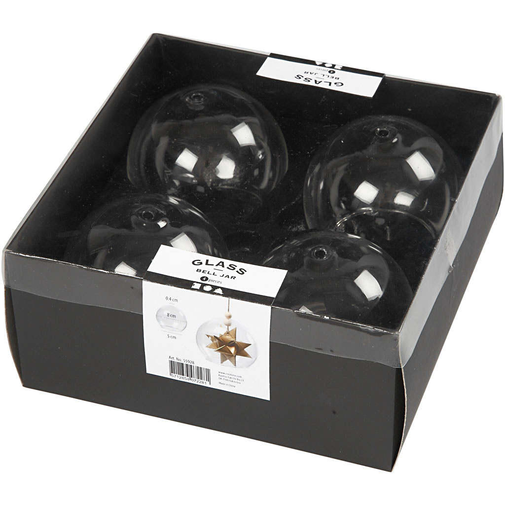 Creativ Company Belvormig glas zonder voet, d 8 cm, gatgrootte 5 cm, transparant, 4 stuk/ 1 doos