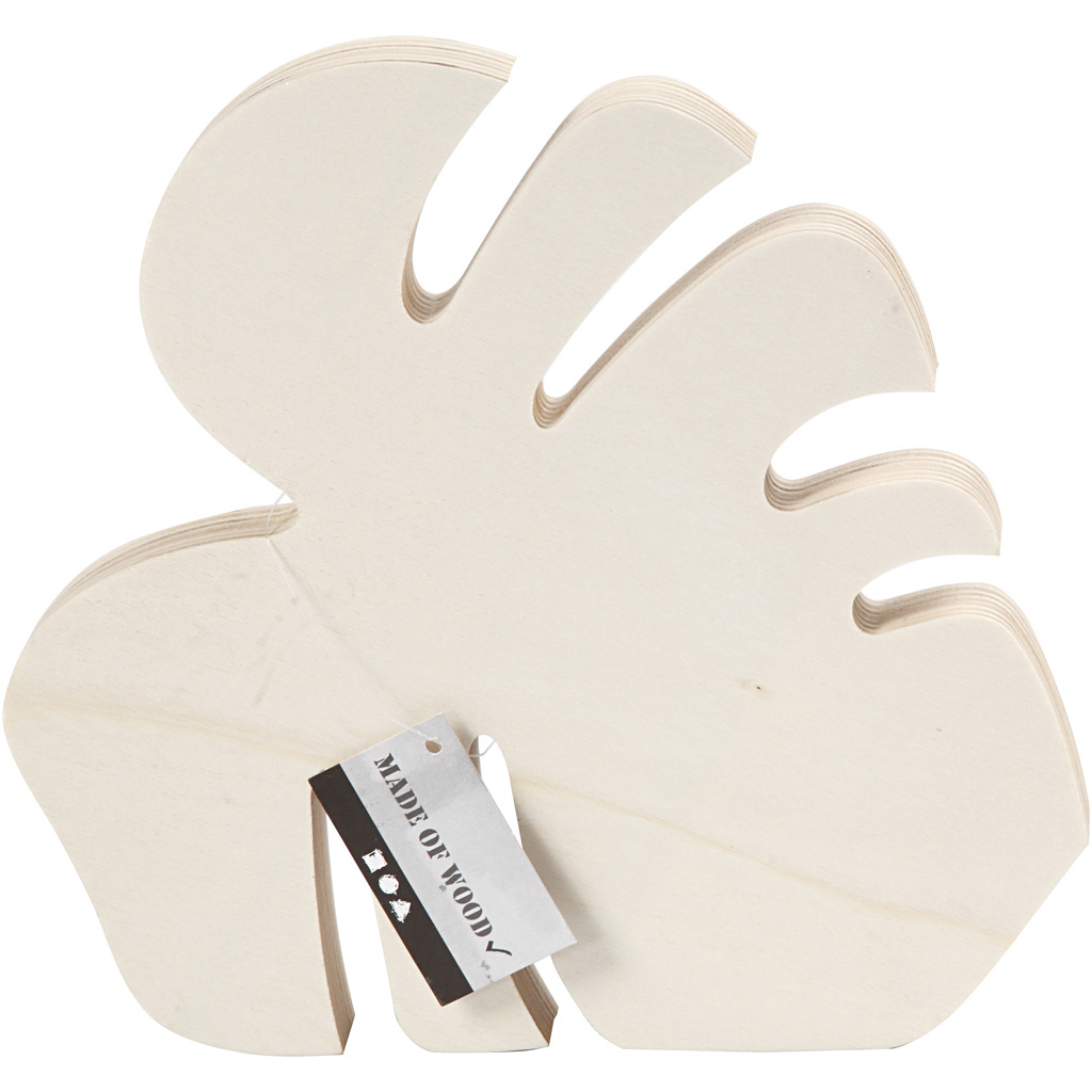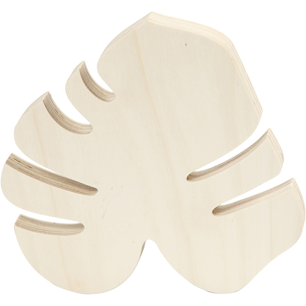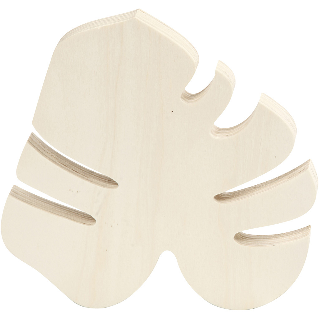 Monstera blad met details gesneden uit licht hout. Kan zelfstandig staan