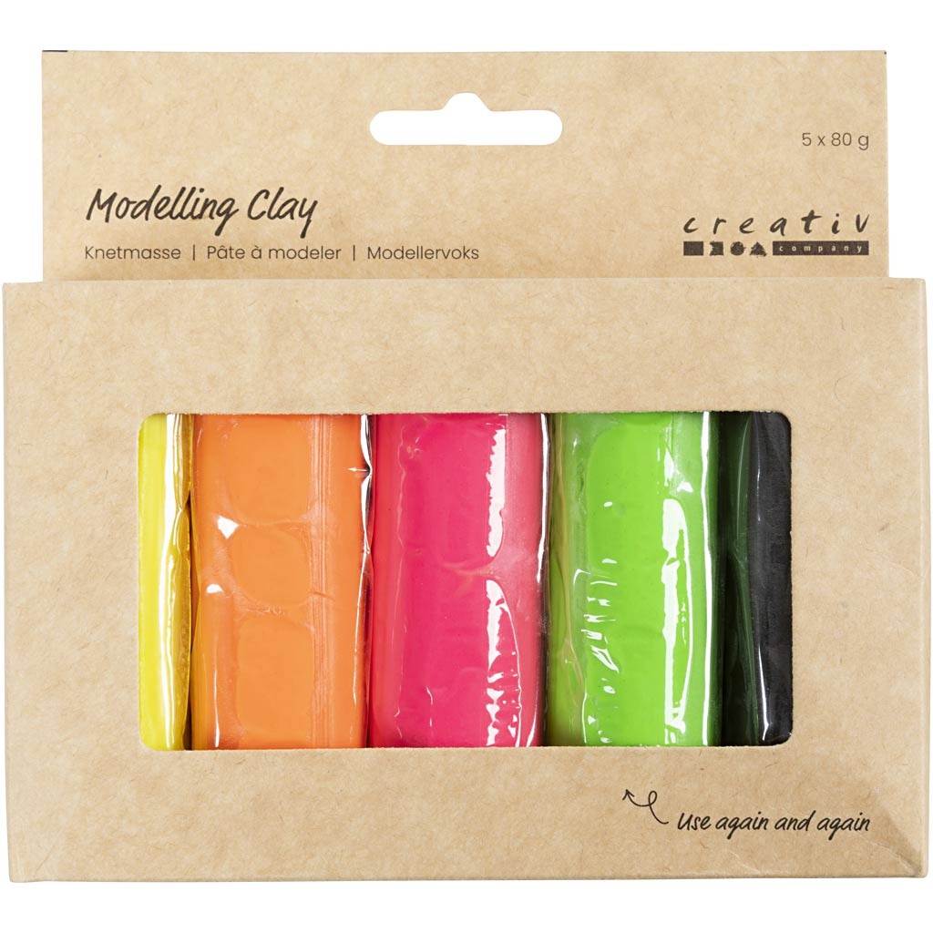 Creativ Company Boetseerklei, H: 9,5 cm, neon kleuren, 5x80 gr/ 1 emmer