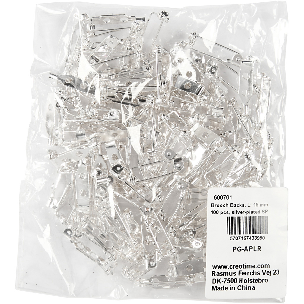 Brochespeld, L: 15 mm, verzilverd, 100 stuk/ 1 doos