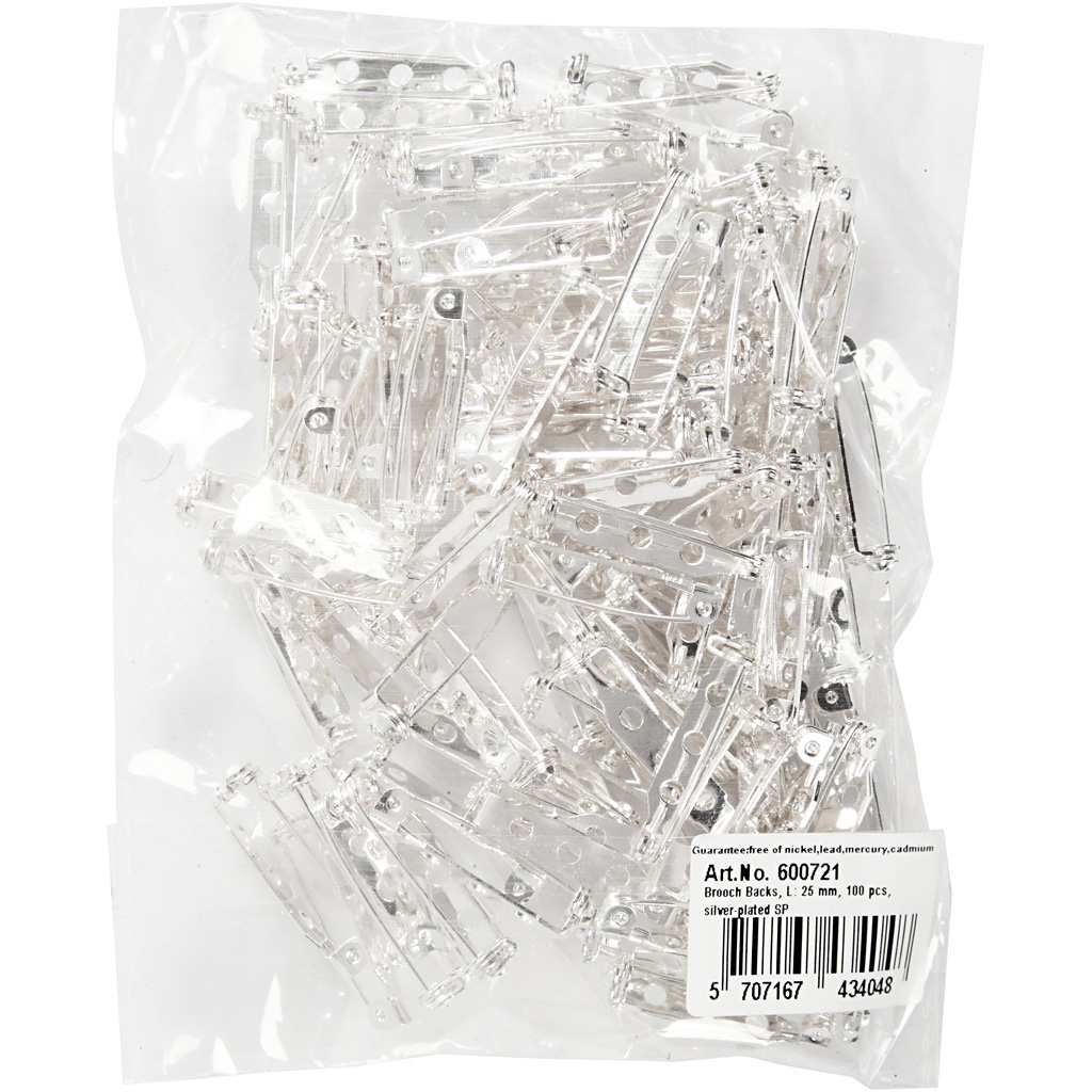 Creativ Company Brochespeld, L: 25 mm, verzilverd, 100 stuk/ 1 doos