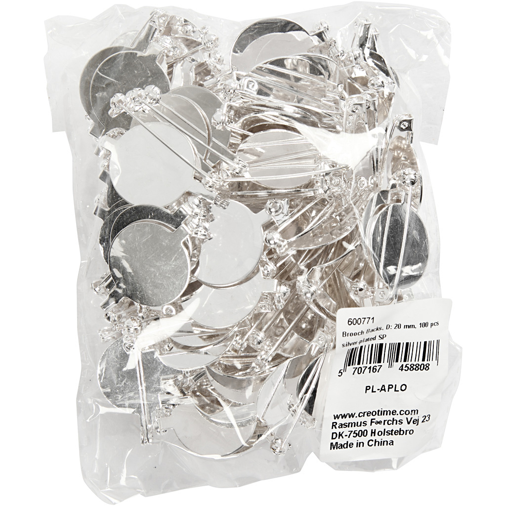 Creativ Company Brochespeld, d 20 mm, verzilverd, 100 stuk/ 1 doos