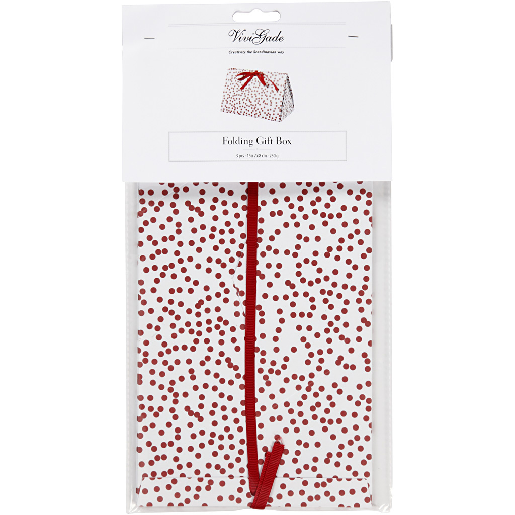 Vivi Gade Cadeaudoos, stippen, afm 15x7x8 cm, 250 gr, rood, 3 stuk/ 1 doos