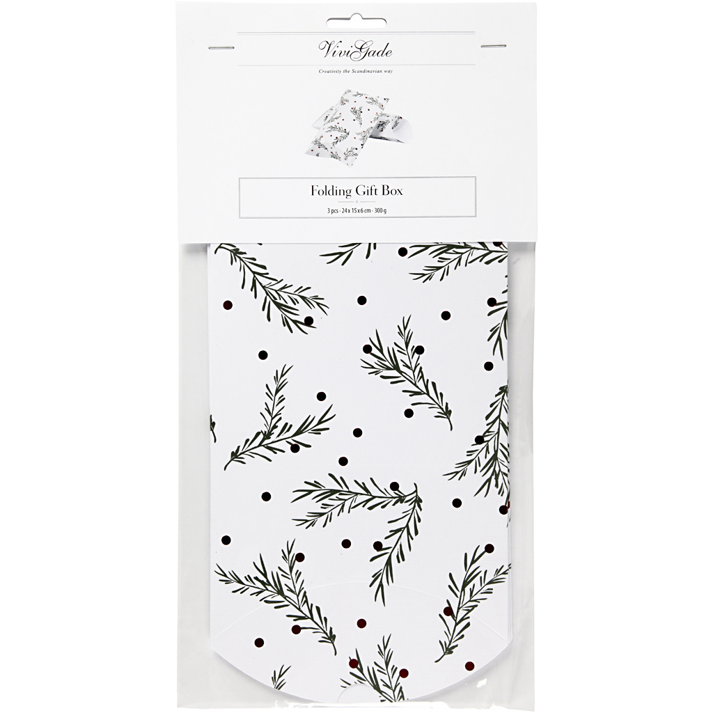 Vivi Gade Cadeaudoosjes, tak met kerstballen, afm 18x15x6 cm, 300 gr, groen, rood metallic, wit, 3 stuk/ 1 doos