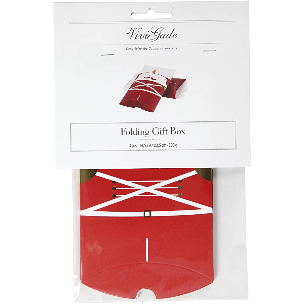 Vivi Gade Cadeaudoosjes, notenkraker, afm 12x9,4x2,5 cm, 300 gr, goud, rood, wit, 3 stuk/ 1 doos