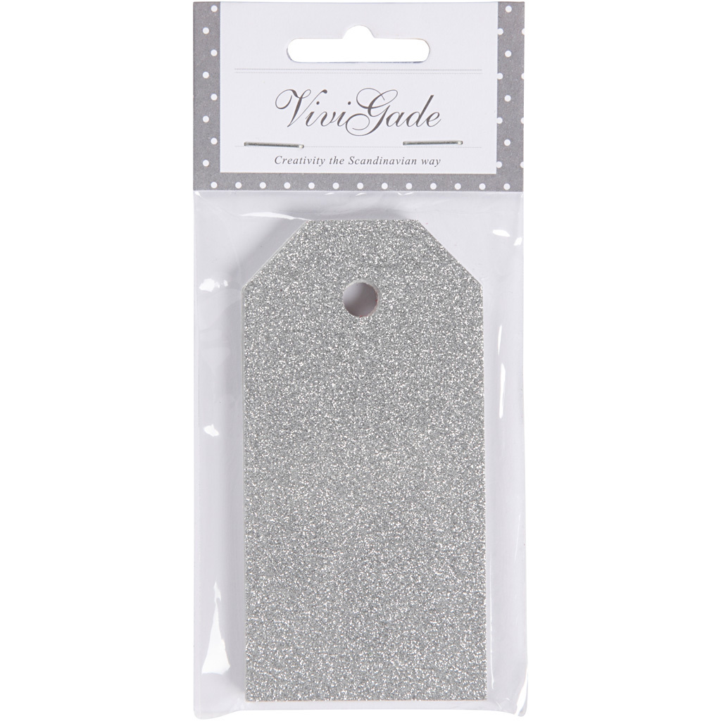 Vivi Gade Cadeaulabels, afm 5x10 cm, glitter, 300 gr, zilver, 15 stuk/ 1 doos