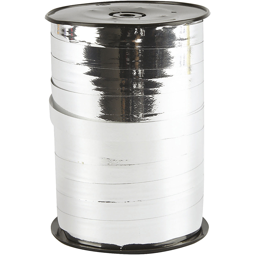 Cadeaulint, B: 10 mm, glossy, zilver metallic, 250 m/ 1 rol