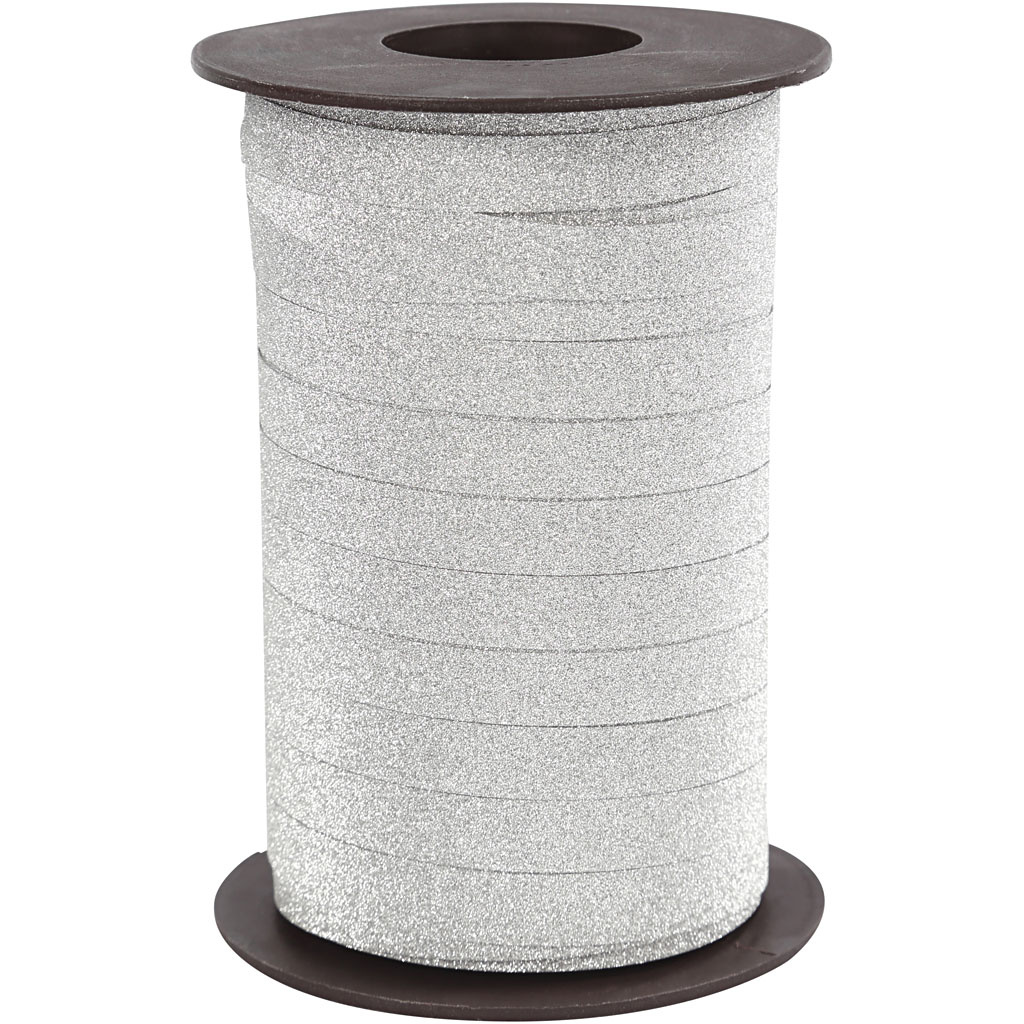 Creativ Company Cadeaulint, B: 10 mm, glitter, zilver, 100 m/ 1 doos