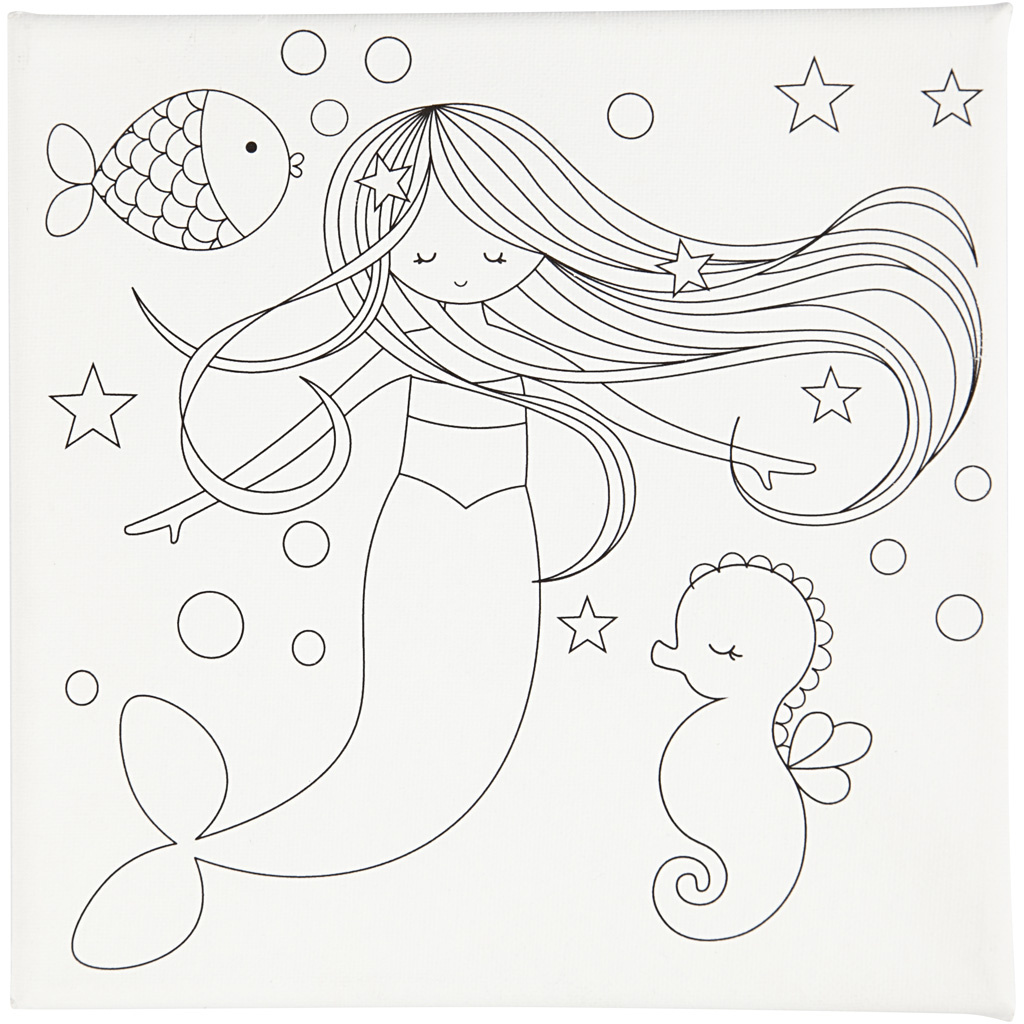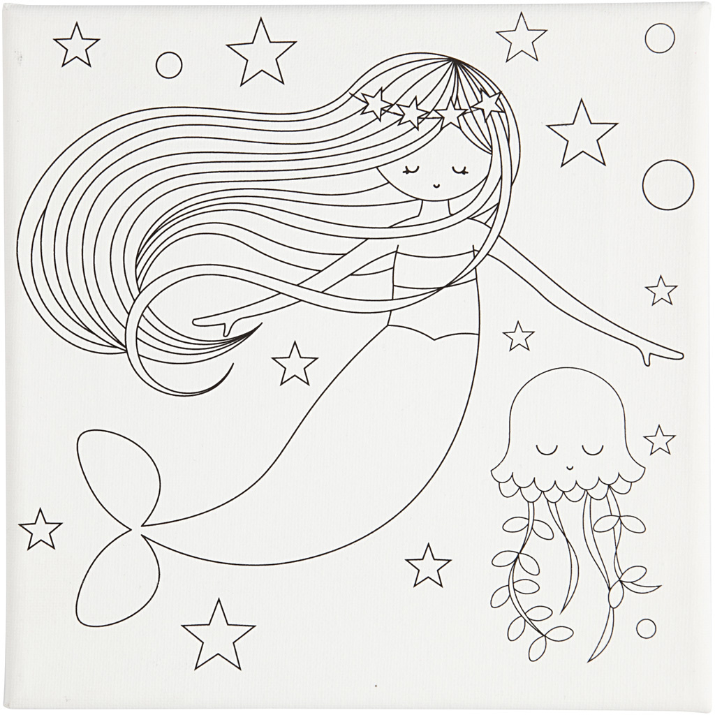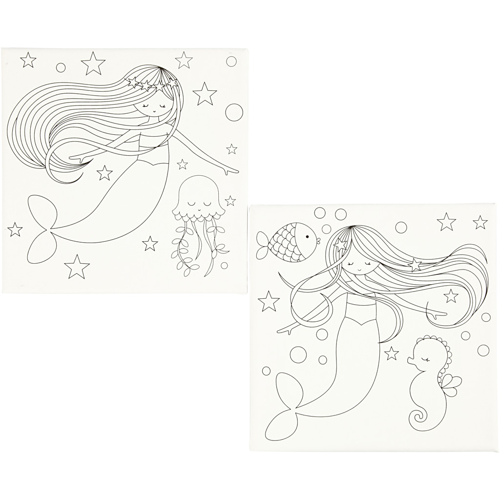Canvas met print, zeemeermin, afm 20x20 cm, 280 gr, wit, 2 stuk/ 1 doos