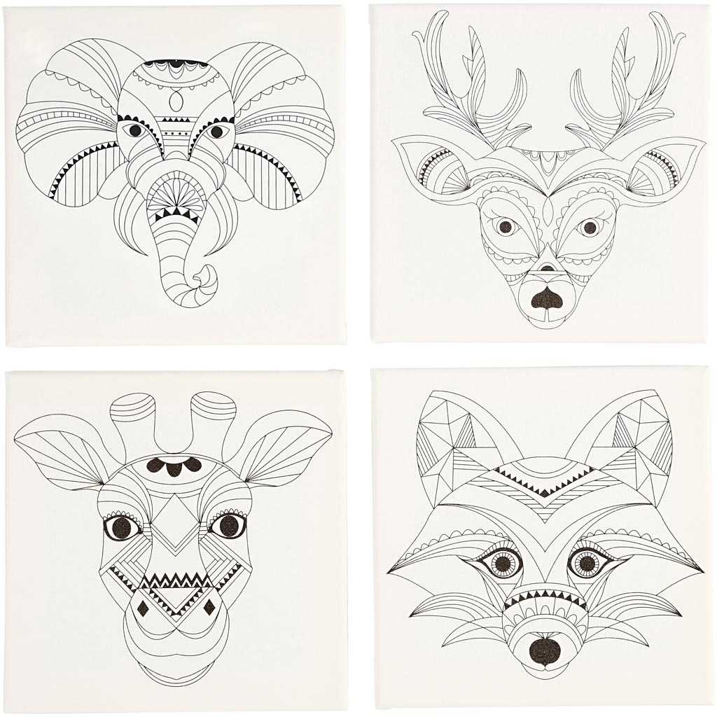Canvas met print, dieren, afm 20x20 cm, 280 gr, wit, 4 stuk/ 1 doos