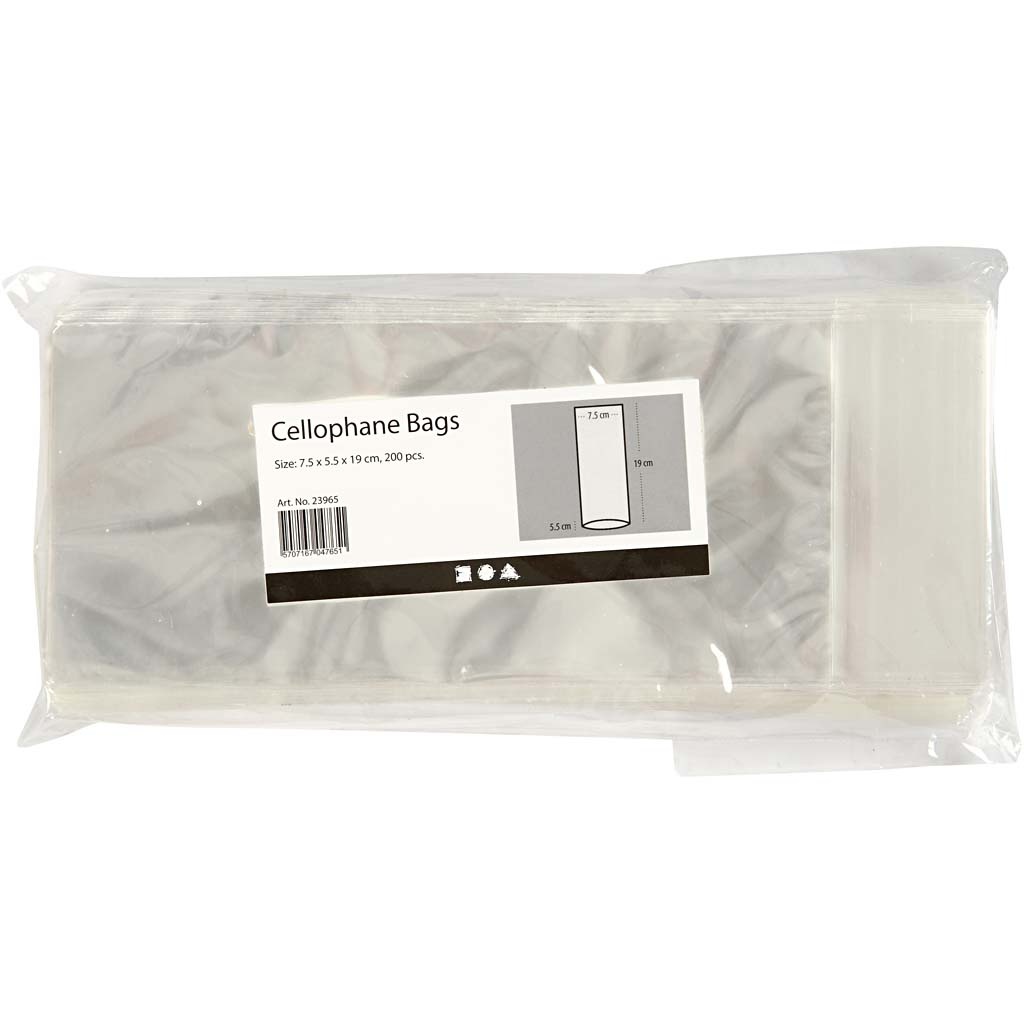 Creativ Company Cellofaan zak, H: 19 cm, afm 7,5x5,5 cm, dikte 25 my, 200 stuk/ 1 doos