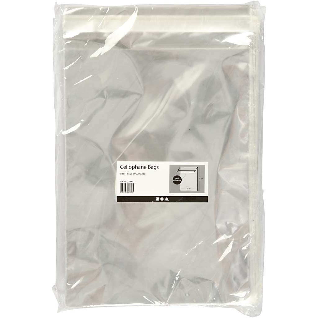 Creativ Company Cellofaan Zakjes, H: 25,3 cm, B: 18 cm, dikte 25 my, 200 stuk/ 1 doos