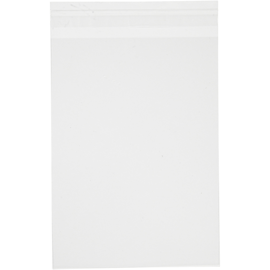 Transparante cellofaan zakjes met zelfklevende flap. Afmetingen betreffen buitenmaat van een dicht zakje