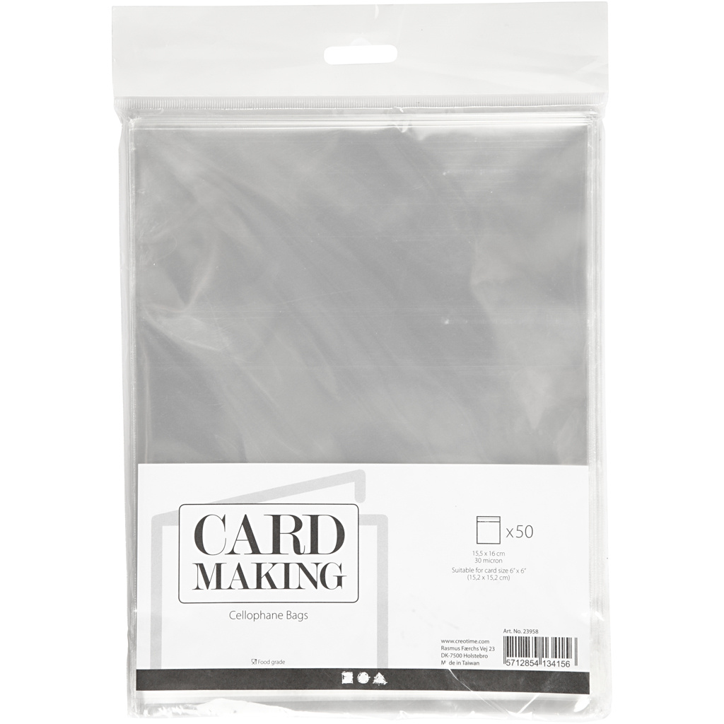 Creativ Company Cellofaan Zakjes, H: 16 cm, B: 16 cm, dikte 30 my, 50 stuk/ 1 doos