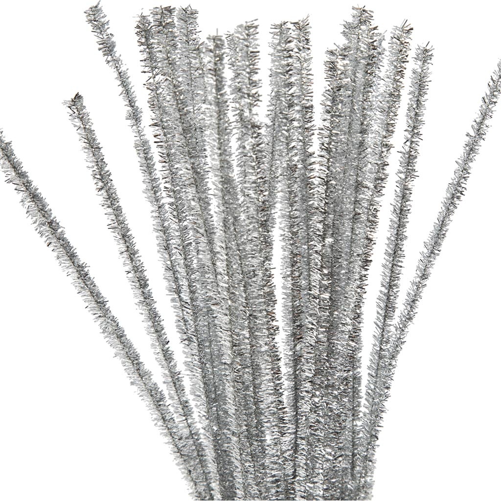 Creativ Company Chenille, L: 30 cm, dikte 6 mm, glitter, zilver, 24 stuk/ 1 doos