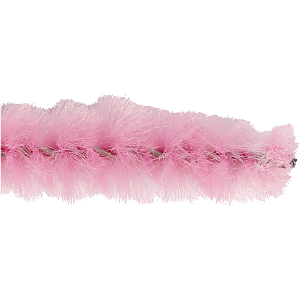Chenille, L: 30 cm, dikte 6 mm, roze, 50 stuk/ 1 doos