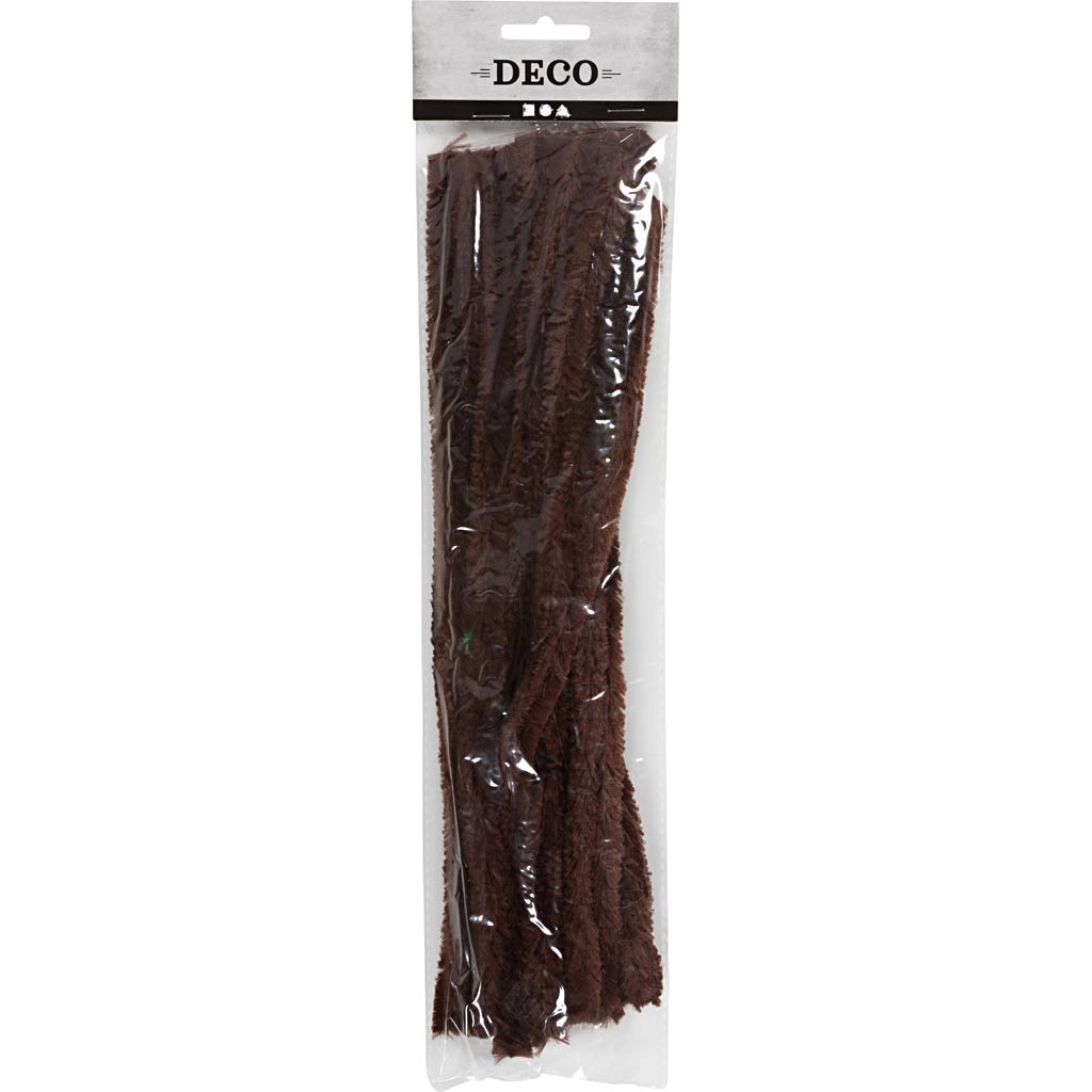 Creativ Company Chenille, L: 30 cm, dikte 15 mm, bruin, 15 stuk/ 1 doos