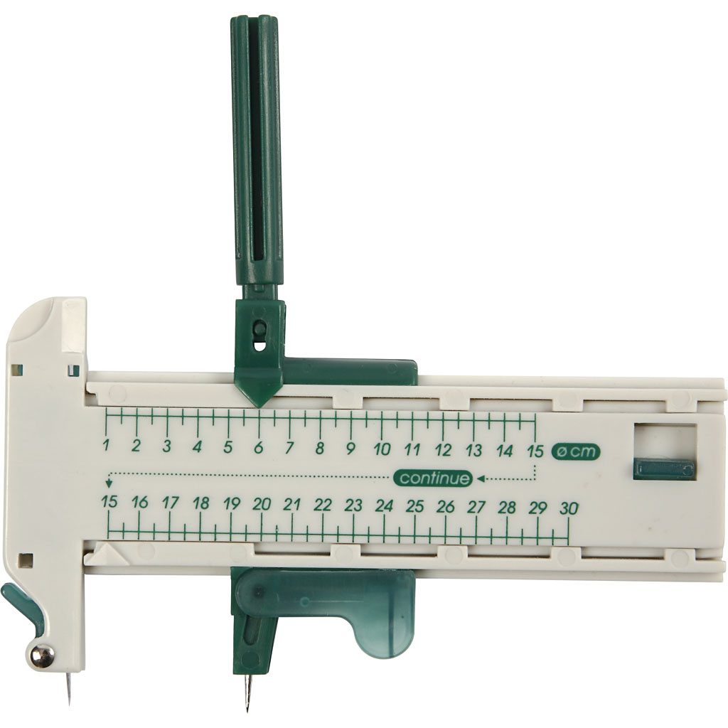 Cirkelsnijder gemaakt van plastic met metalen pin om een cirkel te snijden tot 15 cm diameter - inclusief 6 reservemesjes