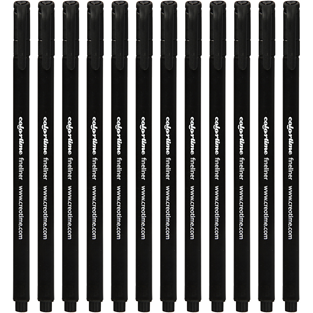 Colortime Colortime fineliners, lijndikte 0,6-0,7 mm, zwart, 12 stuk/ 1 doos