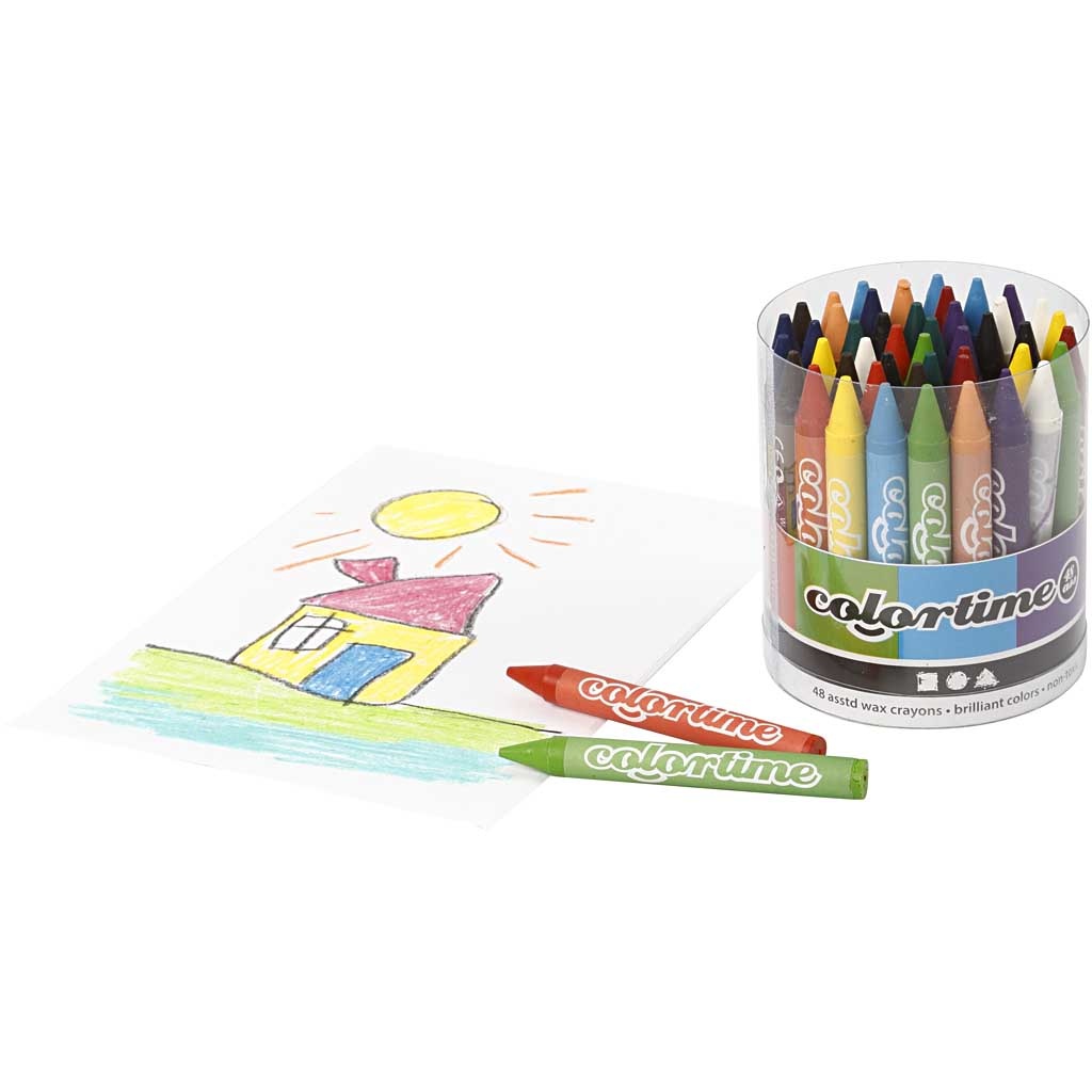 Colortime Colortime Kleurkrijt, L: 10 cm, dikte 11 mm, diverse kleuren, 48 stuk/ 1 doos