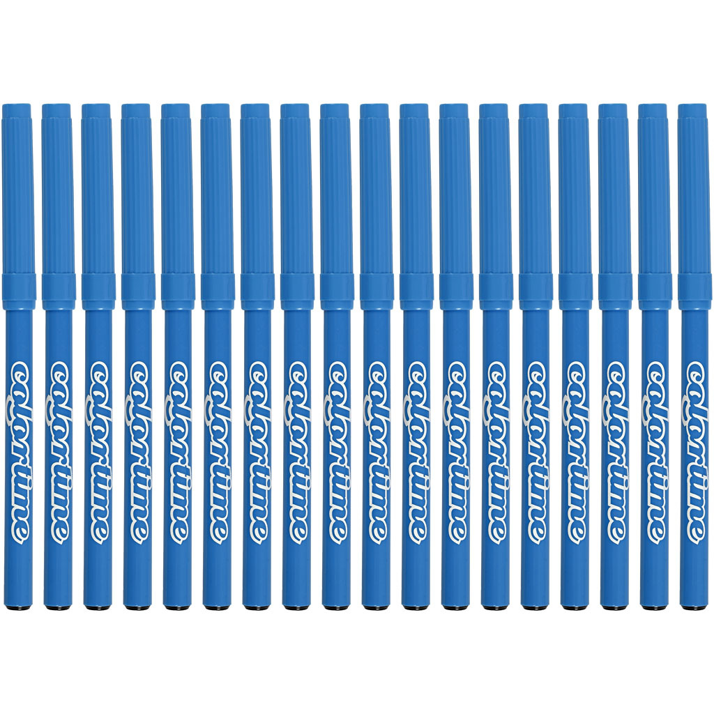 De Colortime stiften set bestaat uit 18 lichtblauwe stiften, elk met een lijndikte van 2 mm. Deze stiften zijn afkomstig van het merk Colortime en zitten handig verpakt in één doos. Door de heldere lichtblauwe kleur breng je eenvoudig frisse accenten aan in tekeningen, kleurplaten en creatieve projecten.