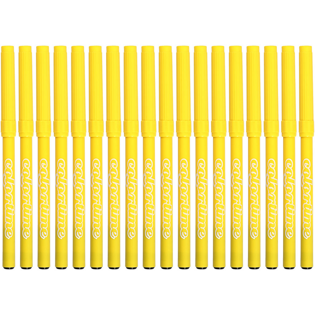 De Colortime stiften zijn ideaal voor creatieve projecten thuis, op school of in een hobbyruimte. Deze doos bevat 18 stiften met een lijndikte van 2 mm en een vrolijke citroengele kleur. Door het handzame formaat en de comfortabele grip kun je eenvoudig fijne lijnen en vlakken inkleuren.