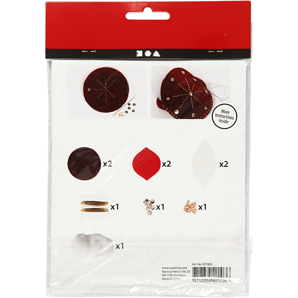 Materialenset voor 3 genaaldvilte kerstballen met kralen en pailletten om te decoreren