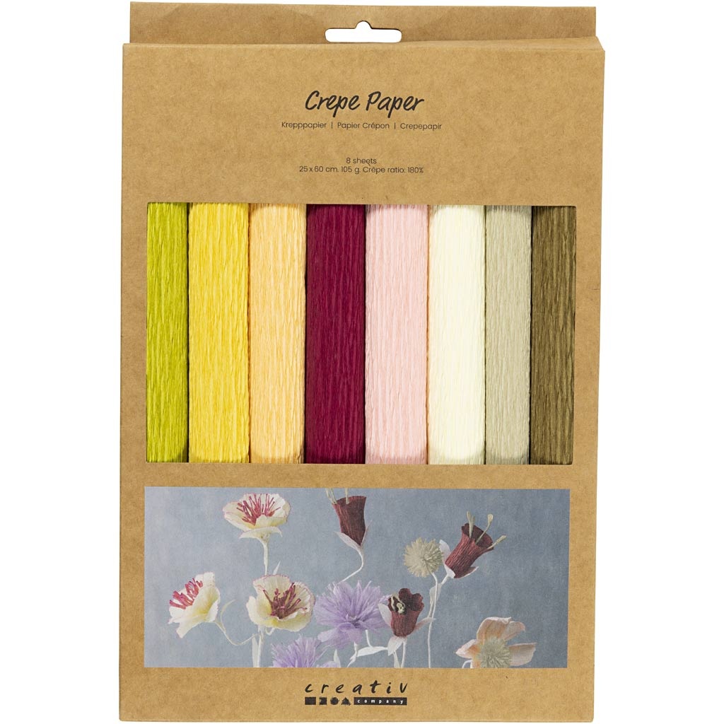 Creativ Company Crêpepapier, vel 25x60 cm, Crêpe-verhouding: 180%, 105 gr, pastelkleuren, 8 vel/ 1 doos