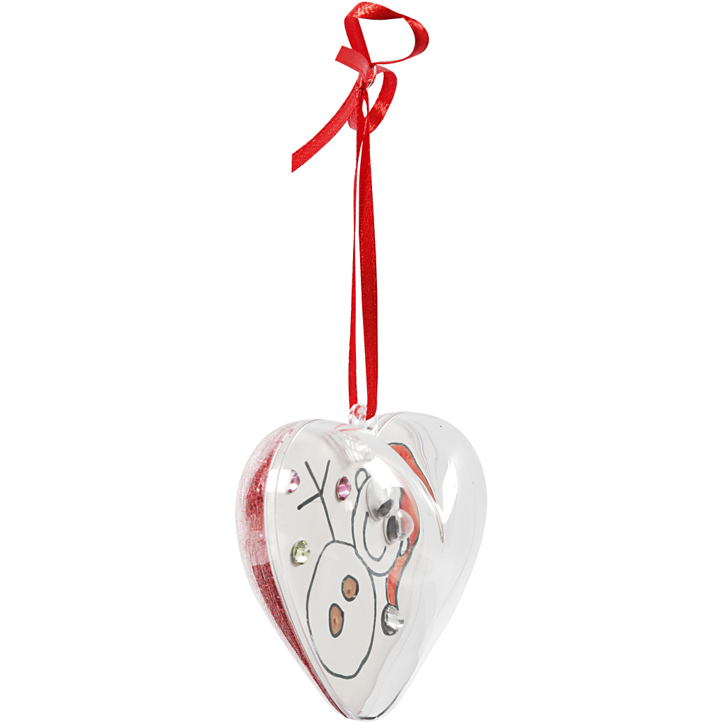 Tweedelig hart van acryl met ophangoog en een stuk karton om te decoreren