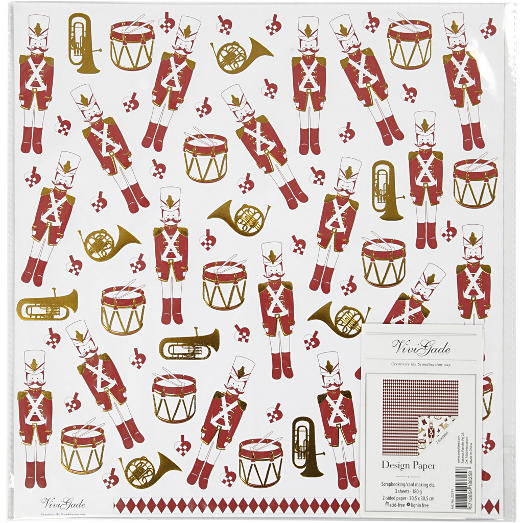 Vivi Gade Design papier, notenkraker, 180 gr, goud, rood, wit, 3 vel/ 1 doos