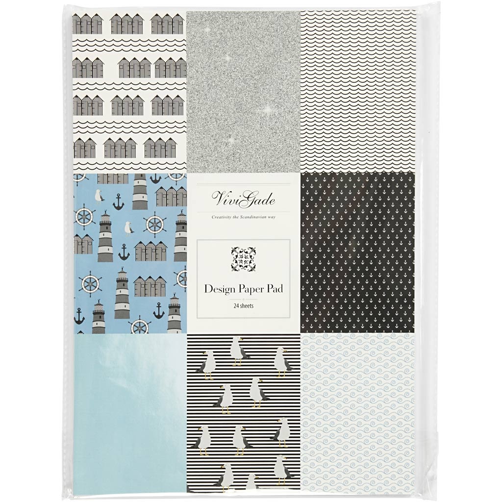 Vivi Gade Design papierblok, afm 21x30 cm, 120+128 gr, zwart, blauw, grijs, wit, 24 vel/ 1 doos