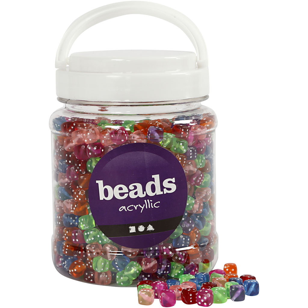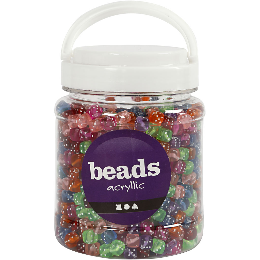 Creativ Company Dobbelsteen Kralen, afm 7x7 mm, gatgrootte 1,5 mm, diverse kleuren, 510 gr, 700 ml/ 1 Doosje