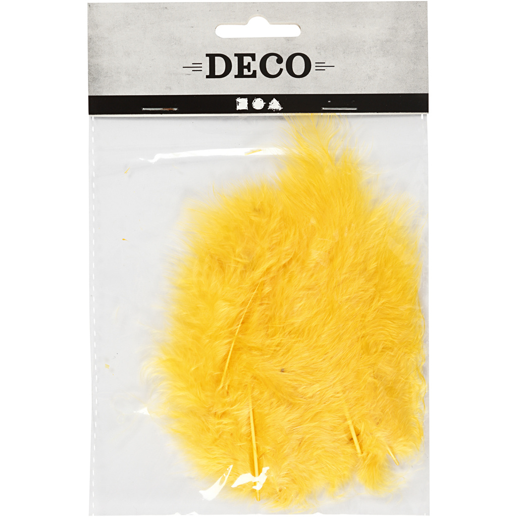 De veren zijn bijzonder geschikt voor het versieren van kaarten, het maken van maskers of het toevoegen van accenten aan bloemstukken en kostuums. De heldere gele kleur maakt ze ideaal voor lentethema’s, paasdecoraties of kinderkunstprojecten. Tip: Gebruik een klein beetje lijm om de veren stevig te bevestigen op papier, karton of stof.