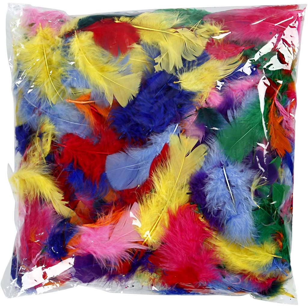 De donsveren van Creativ Company zijn een veelzijdig product gemaakt van natuurlijke materialen, geleverd in een mix van verschillende kleuren. Elke doos bevat 50 gram veren met een lengte van 7 tot 8 cm, geschikt voor allerlei creatieve projecten. Dankzij de gevarieerde kleuren sluiten de veren aan bij uiteenlopende ontwerpen en stijlen, zowel bij knutselactiviteiten als bij decoratieve toepassingen.
