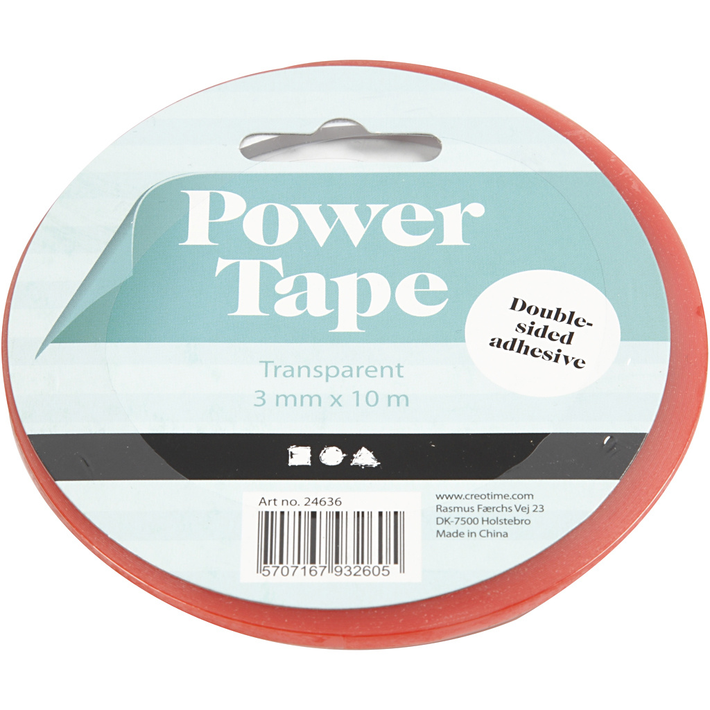 Creativ Company Dubbelzijdig klevend power tape, B: 3 mm, 10 m/ 1 rol