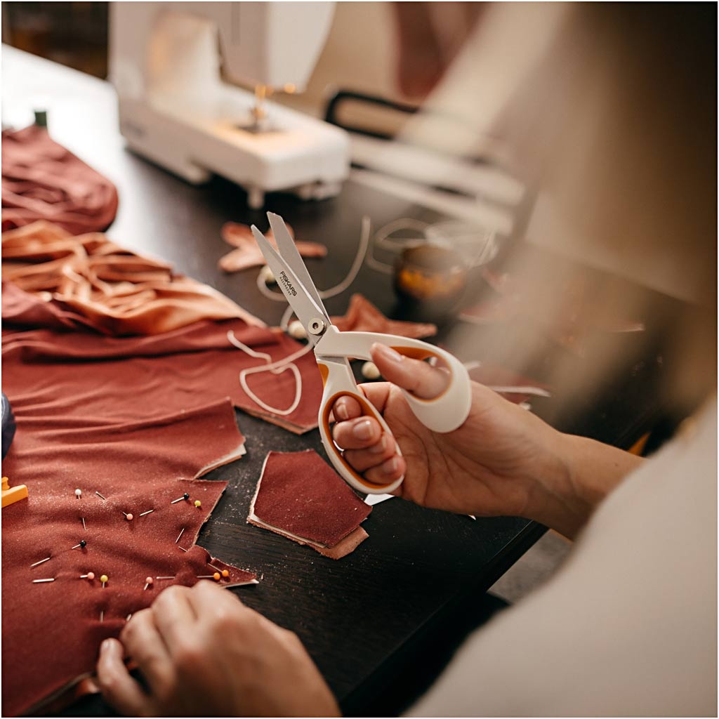 Deze schaar van Fiskars is ontworpen voor veeleisende naai- en knutselprojecten, zoals het op maat maken van kleding of het afwerken van stoffen randen. Gebruik de scherpe bladen voor het knippen van delicate of dikke stoffen en profiteer van het ergonomische ontwerp voor nauwkeurig recht of gebogen knipwerk. Voor de beste resultaten adviseren wij om de schaar uitsluitend te gebruiken voor textiel, zodat de bladen scherp blijven.