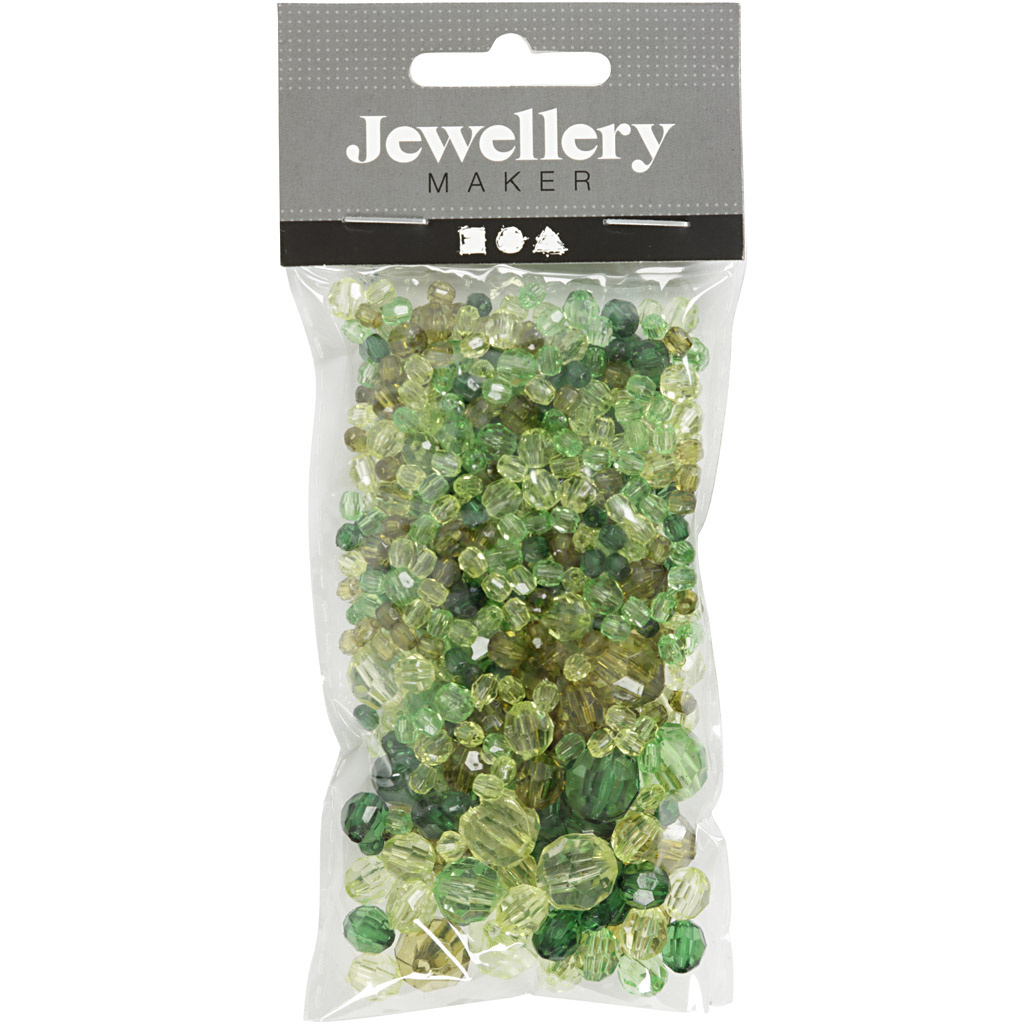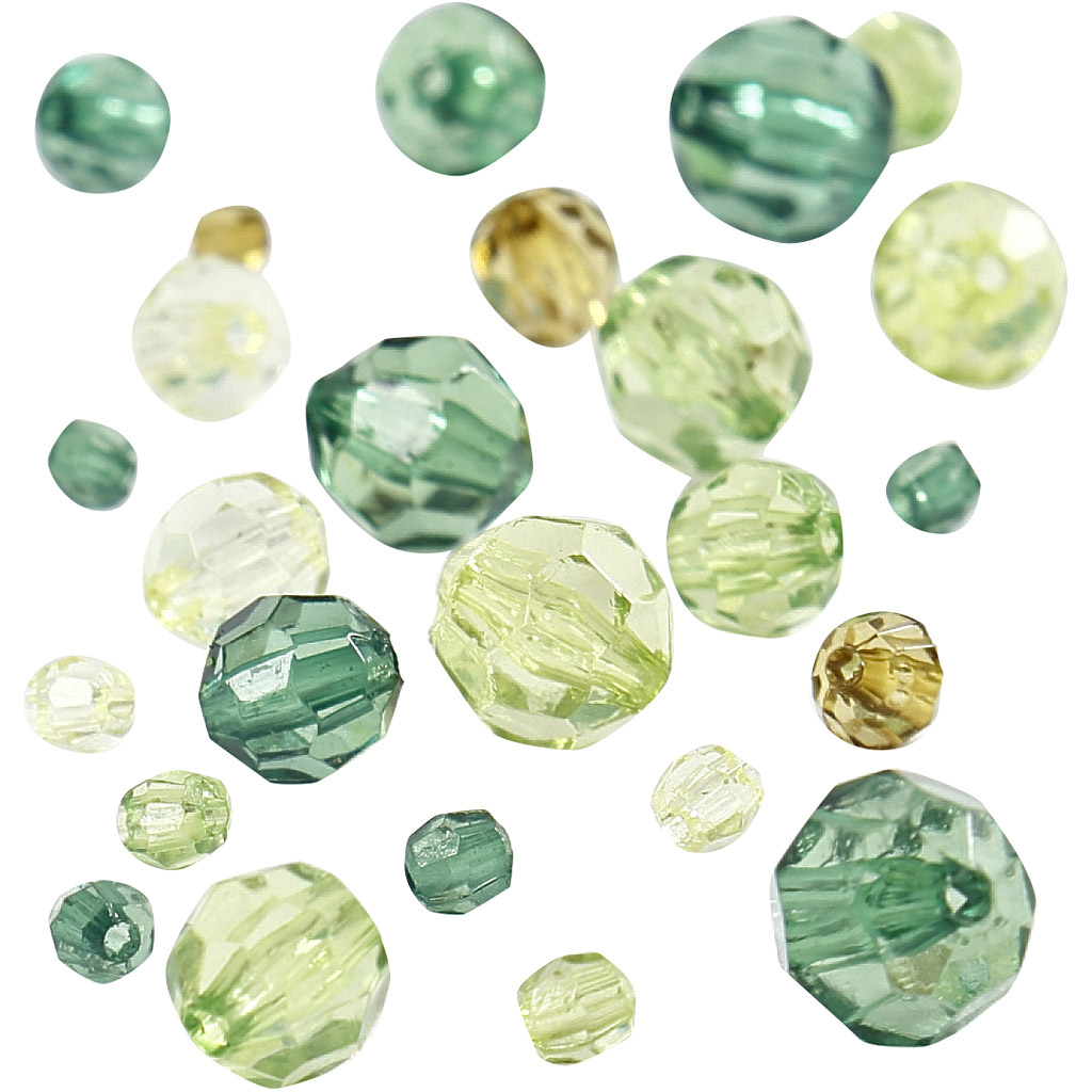 Creativ Company Facet kralen, afm 4-12 mm, gatgrootte 1-2,5 mm, groen glitter, 45 gr/ 1 doos