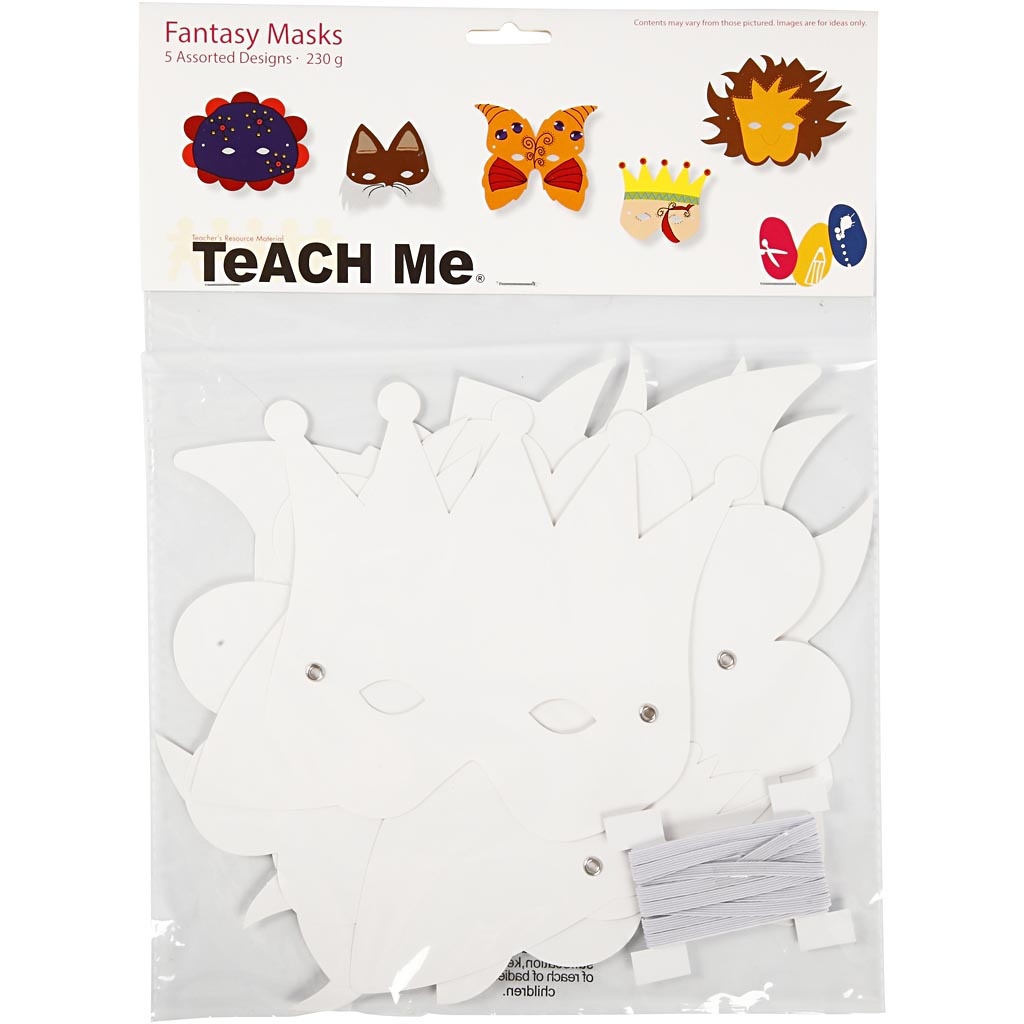 Creativ Company Fantasiemaskers - Inclusief elastiek, H: 15-20 cm, 230 gr, wit, 5 stuk/ 1 doos