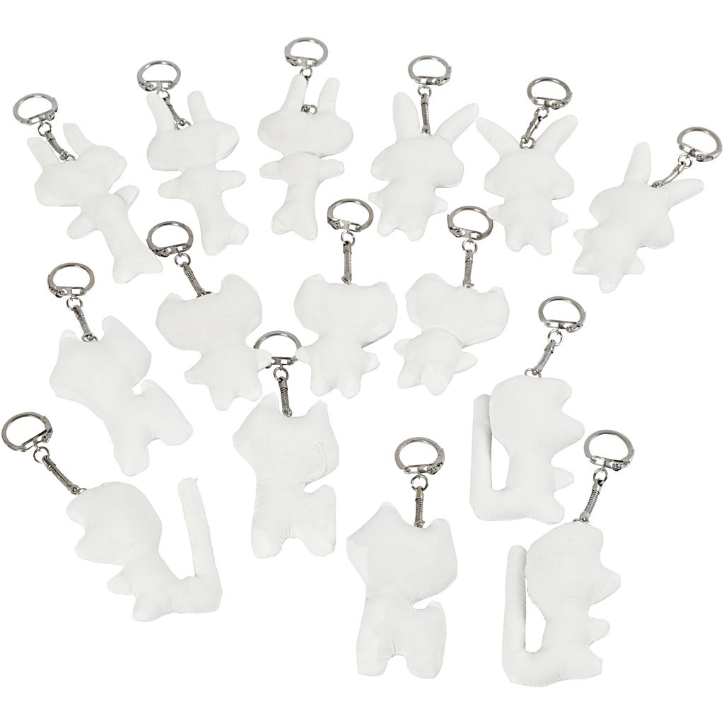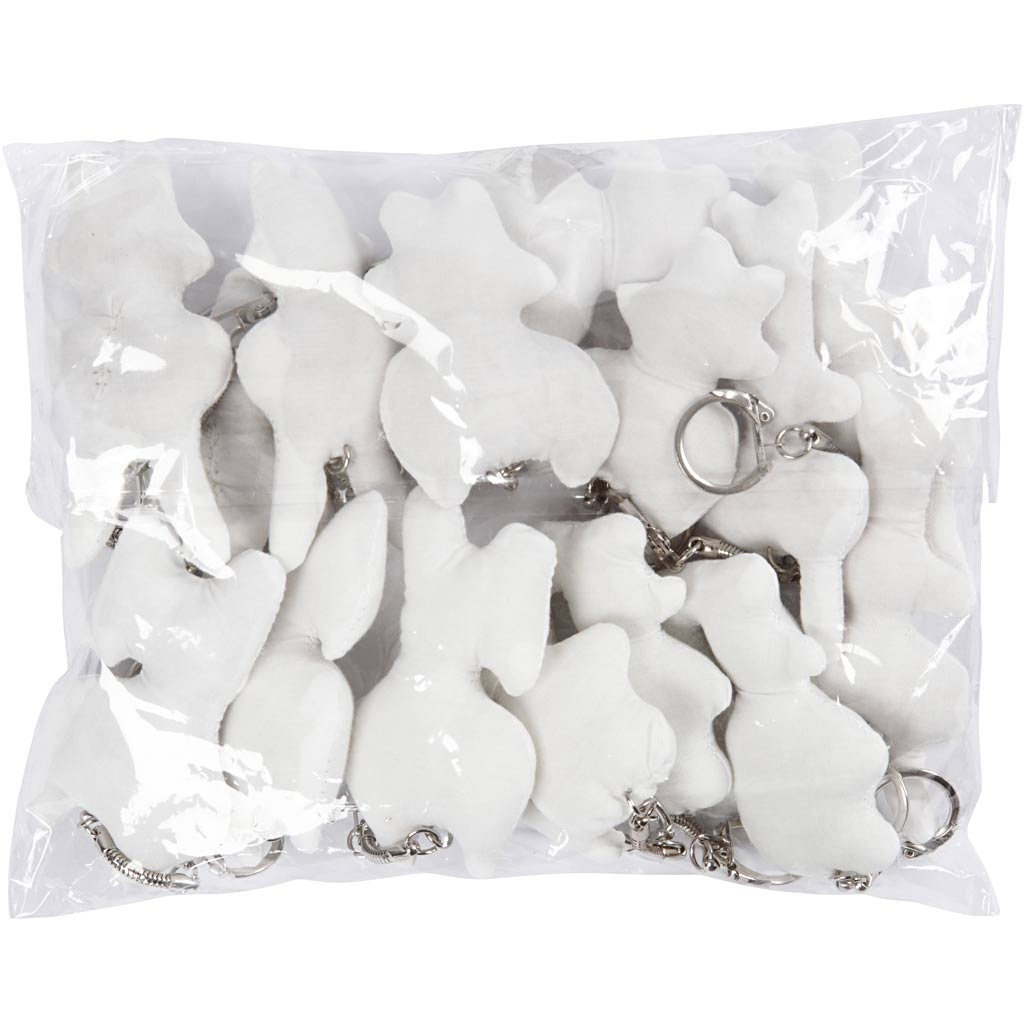 Figuren van textiel met sleutelhanger, afm 6-10 cm, wit, 15 stuk/ 1 doos