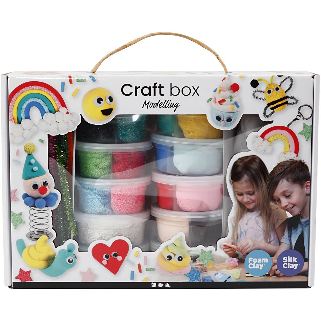 Geef de creativiteit van kinderen een boost met deze set, die de zelfhardende boetseermassa Silk Clay, Foam Clay, Foam Clay Large en Foam Clay Extra Large bevat - allemaal ideaal voor het modelleren van figuren en het bedekken van een verscheidenheid aan objecten