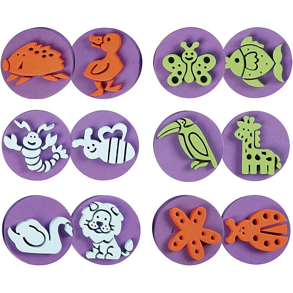 Creativ Company Foam stempels, dieren, d 7,5 cm, dikte 2,5 cm, 6 stuk/ 1 doos